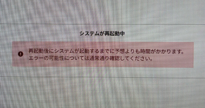 しばらく待っているとアップデート方法のPDFに載っていなかったアラートが。