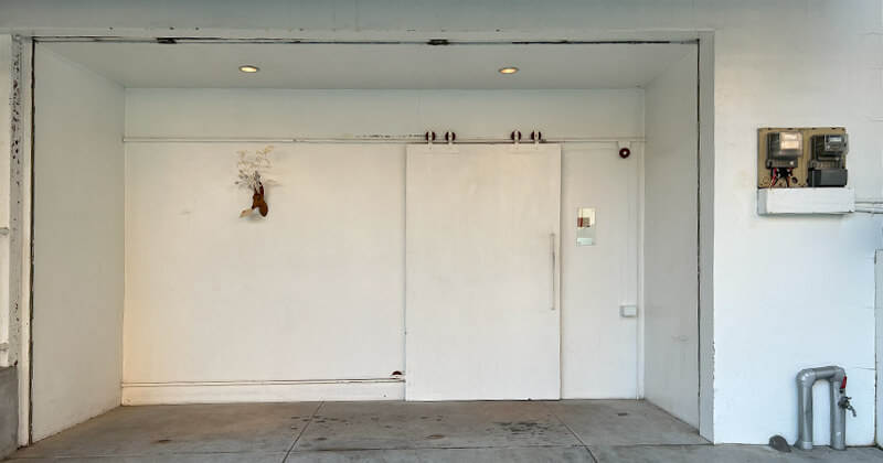 ほっそい自動ドアを入ると目の前がもうドン付きの壁。